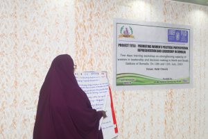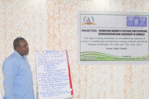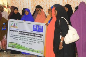 SBACO held a two day training workshop in 10th and 11th , July, 2019 on strengthening the capacity of women in leadership and decision making in Galkacyo district in Puntland, Somalia. SBACO invited 40 participants from different target groups of 18 Youth, 10 Women activist, 10 Elders and 2 Local Councilors.